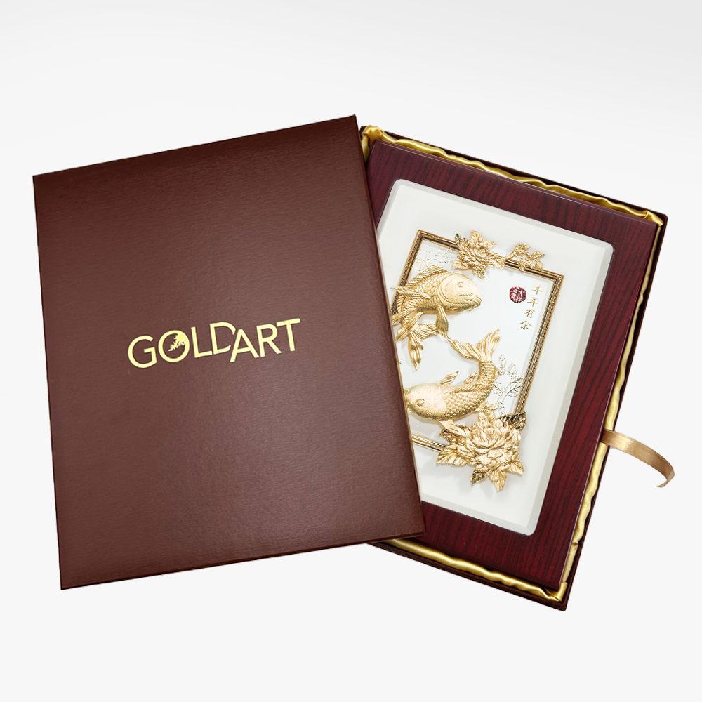 Immerse yourself in the eternal blessings of "Koi of Eternal Fortune," a mesmerizing framed gold art piece. The graceful koi fish gracefully swim amidst swirling waters, symbolising prosperity, abundance, and good luck that transcends time. Let this artwork serve as a reminder that as you navigate the currents of life, blessings and fortune will flow endlessly, bringing you a lifetime of prosperity and joy.